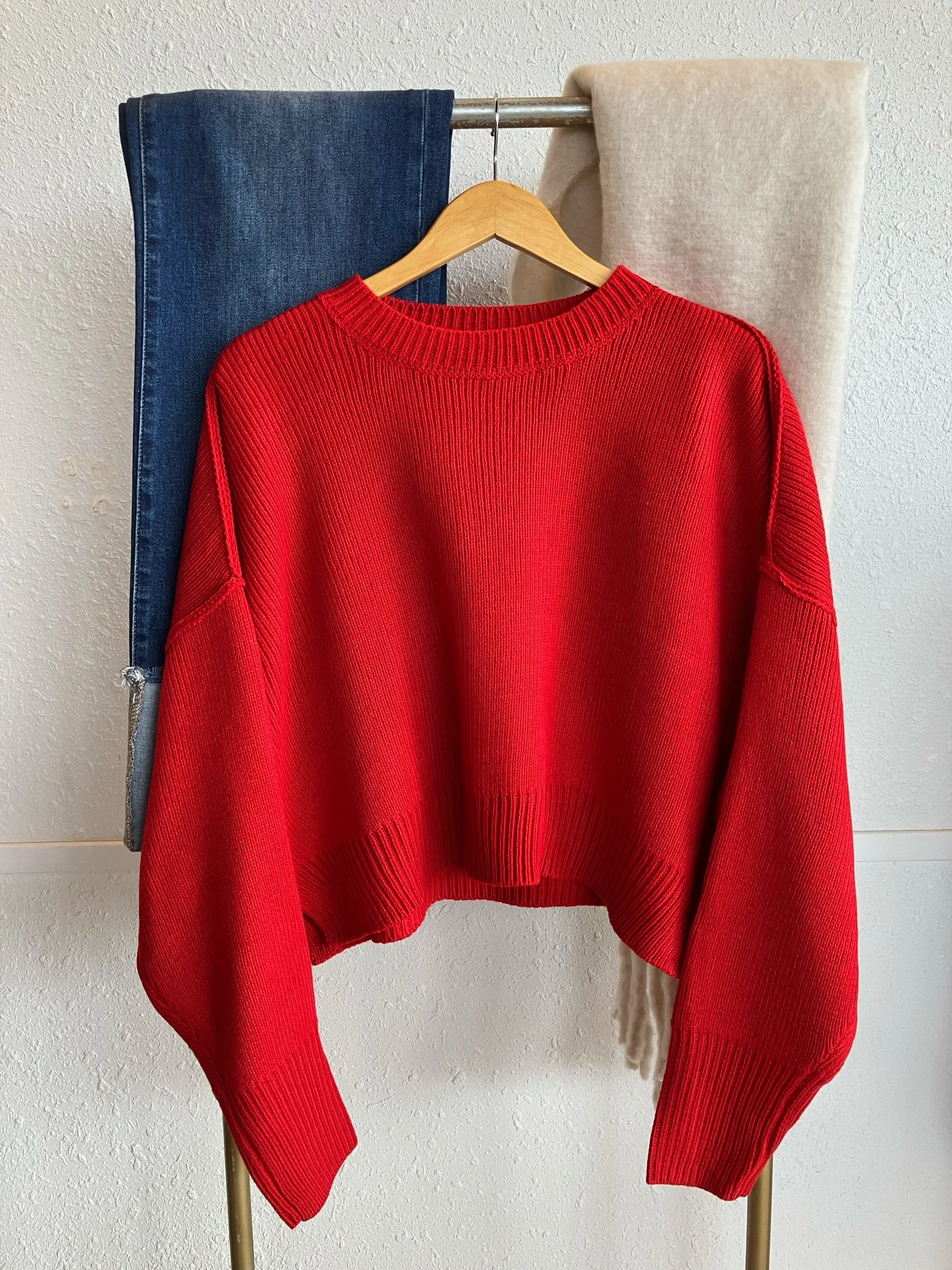 Shop › Pink Friday Deal — Red Sweater Image 1 of 1 Pink Friday Deal — Red Sweater $51.00 A knitted sweater made for quick pairing making giving a closet staple.• 100% Acrylic Size: Small Medium Large Get notified by email when this product is in stock. Quantity: Add To Cart Added! A knitted sweater made for quick pairing making giving a closet staple.• 100% Acrylic
