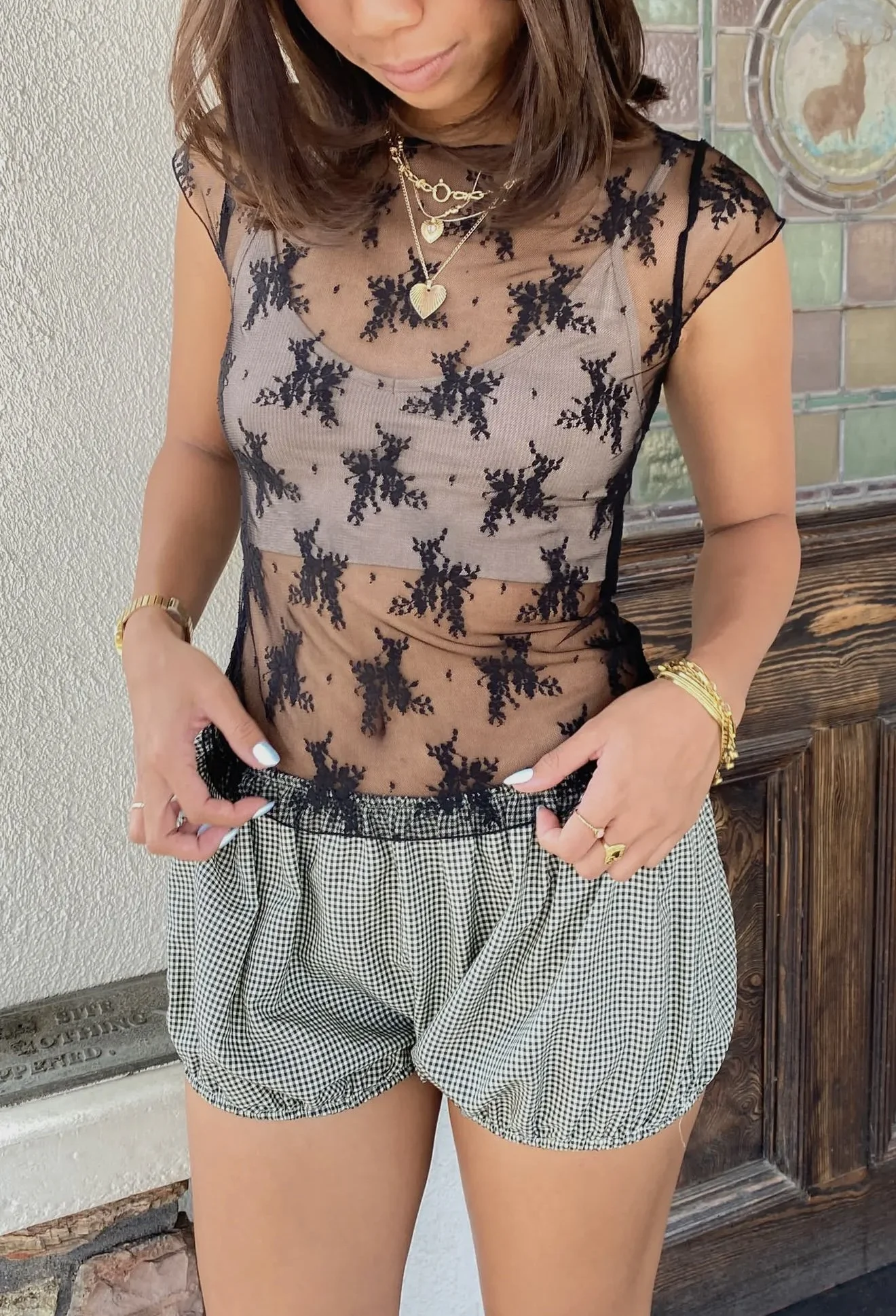 Shop › Short Sleeve Lace Layering Tops Image 1 of 3 Image 2 of 3 Image 3 of 3 Short Sleeve Lace Layering Tops $31.00 A short sleeve lace layering top. • 90% Nylon, 10% Spandex Size: Select Size Small Medium Large Color: Select Color Black Brown Get notified by email when this product is in stock. Quantity: Add To Cart Added! A short sleeve lace layering top. • 90% Nylon, 10% Spandex