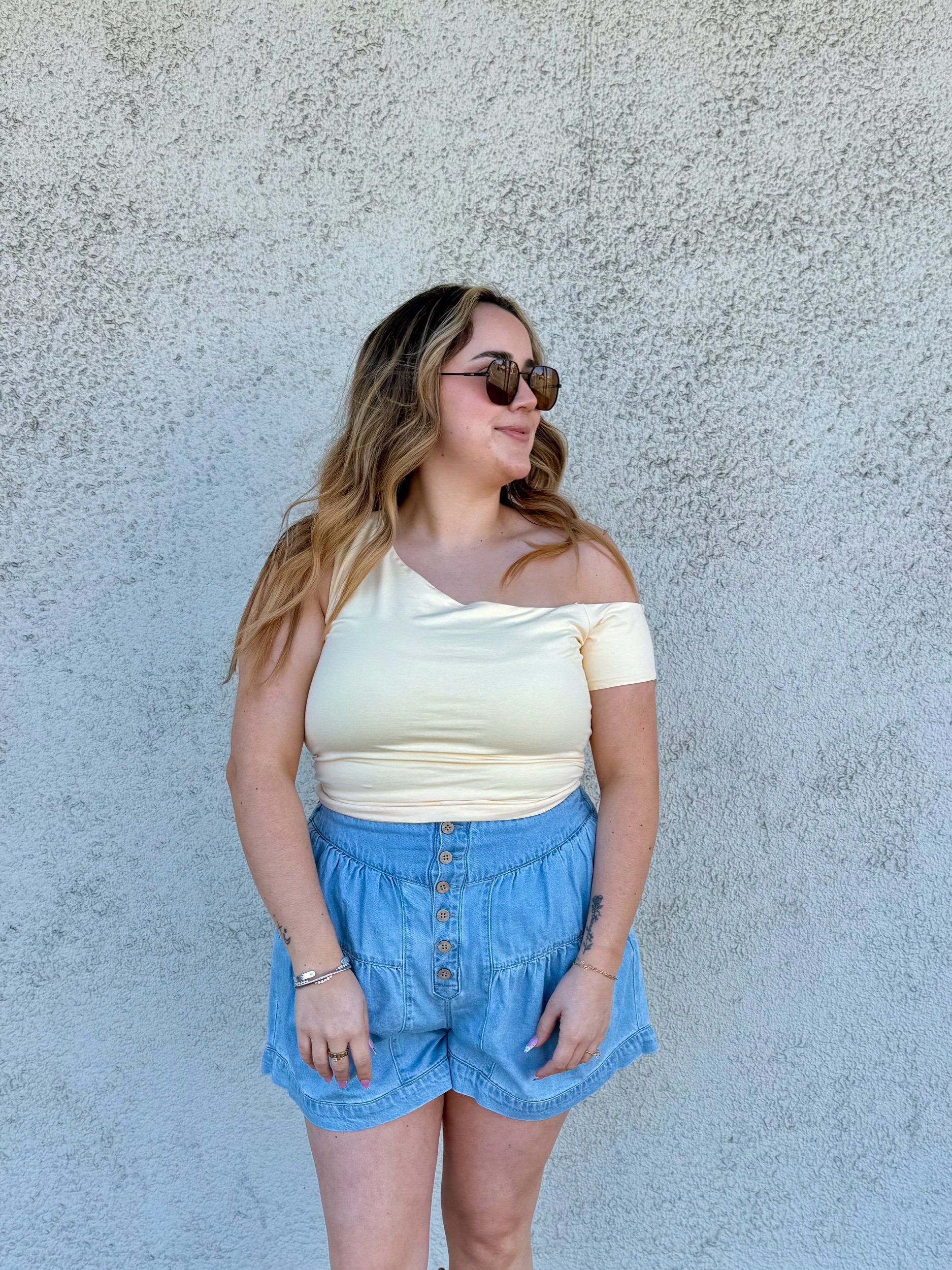 A soft like butter, asymmetrical cut tank. A fitted look but don’t be surprised at the love for the fit of this top! Flattering, comfy & so sophisticated. Perfect for all the occasions! Asymmetrical, meaning one side is on the shoulder and the other is off with a boat neckline cut.