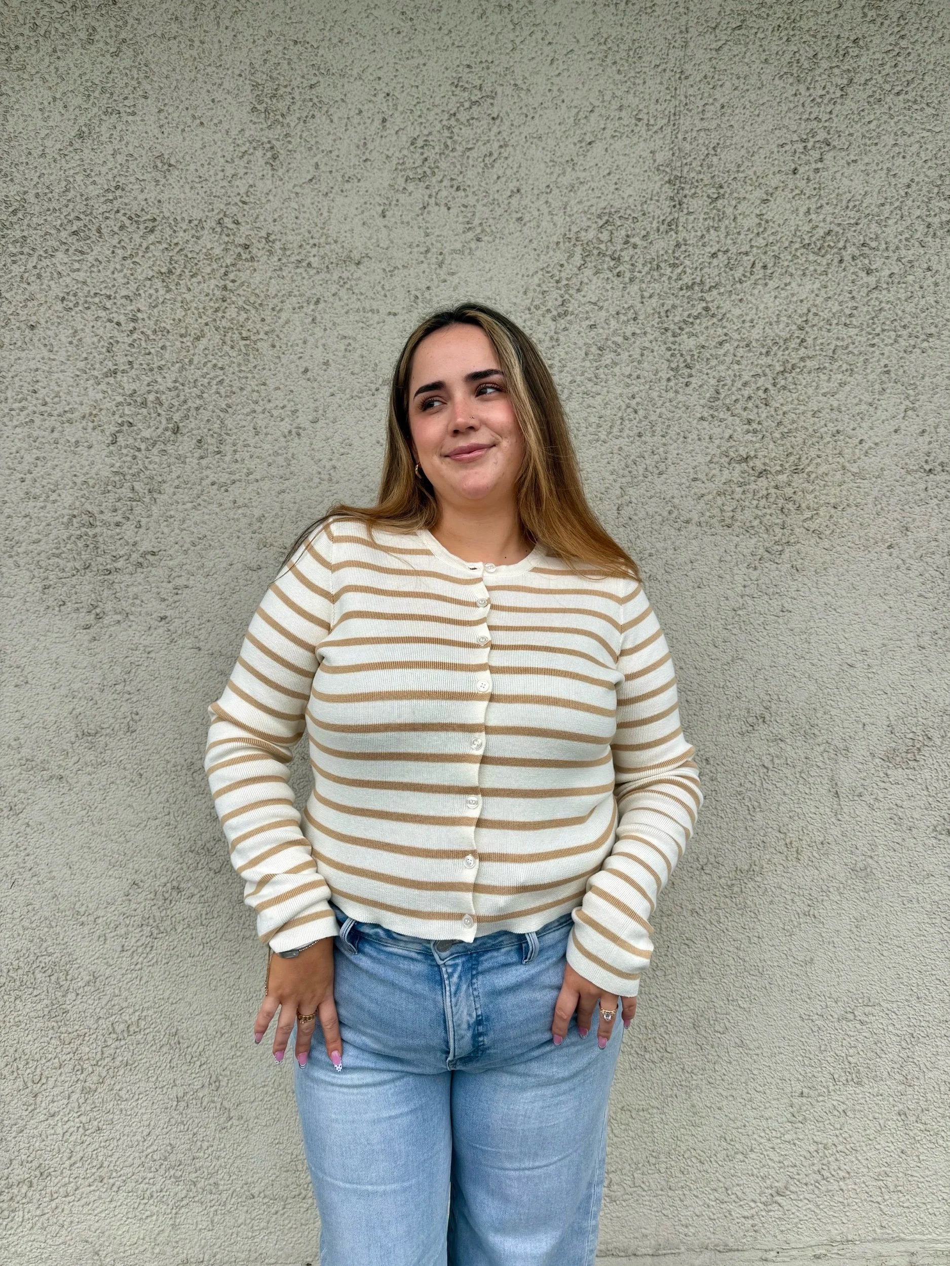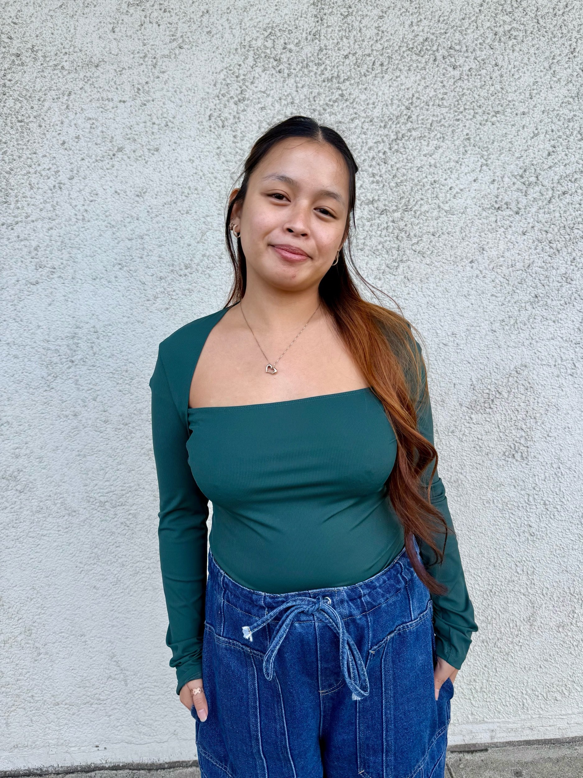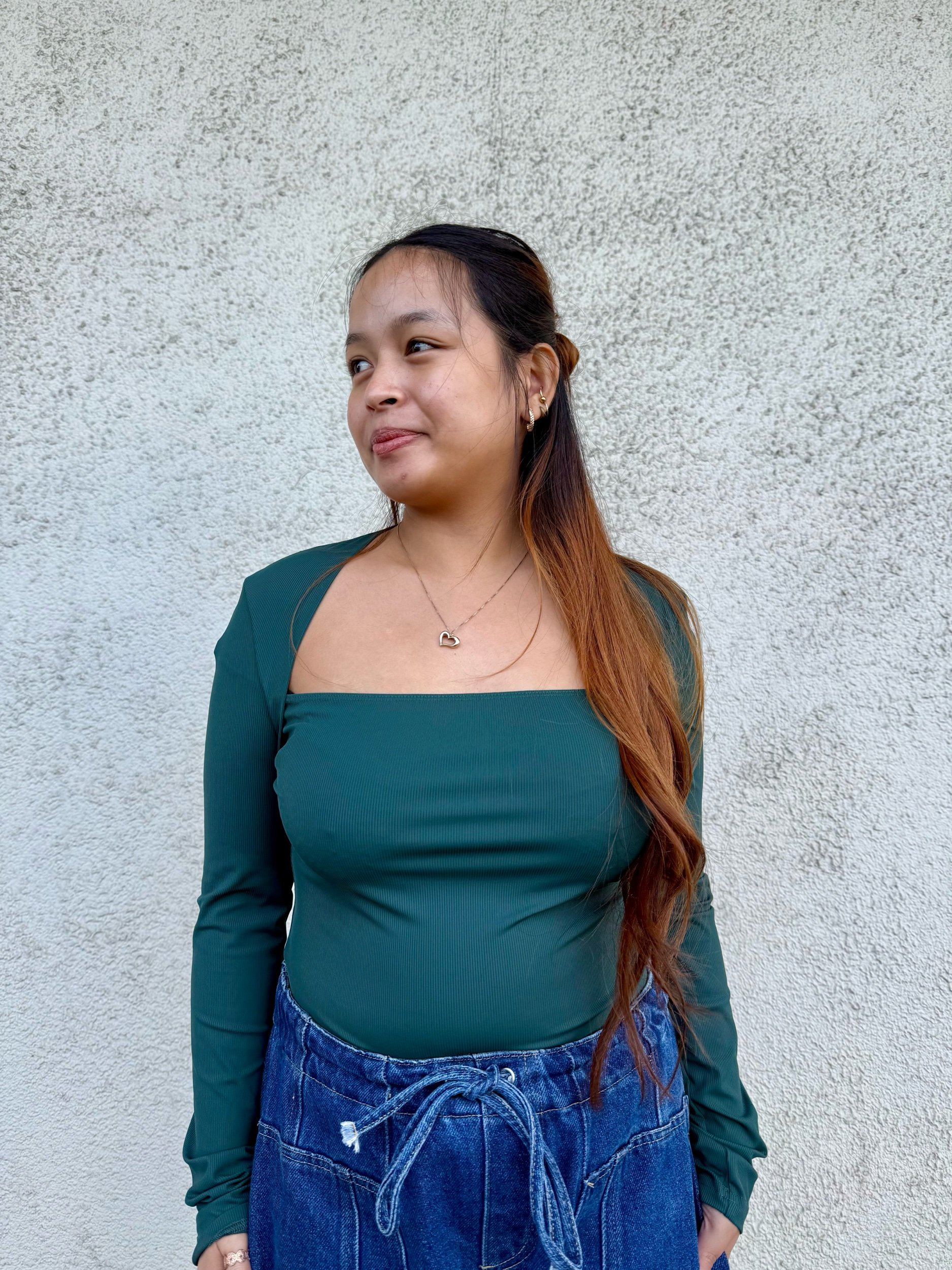 A dark taupe soft to touch long sleeve, a quick layering piece making it a staple.