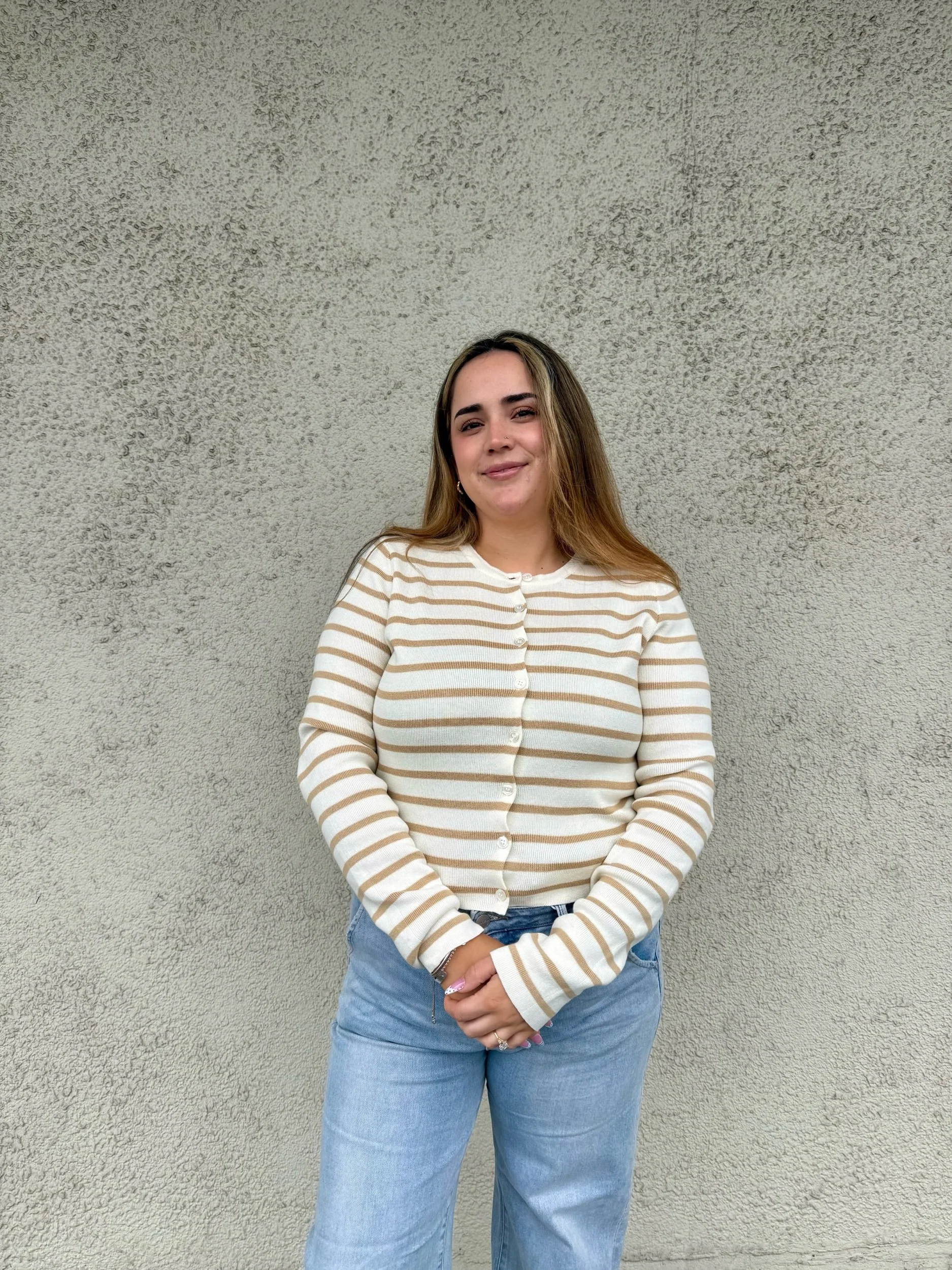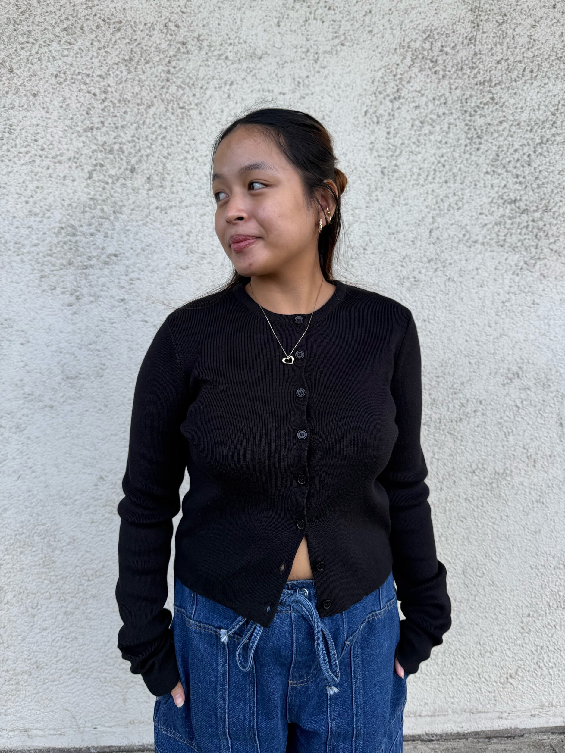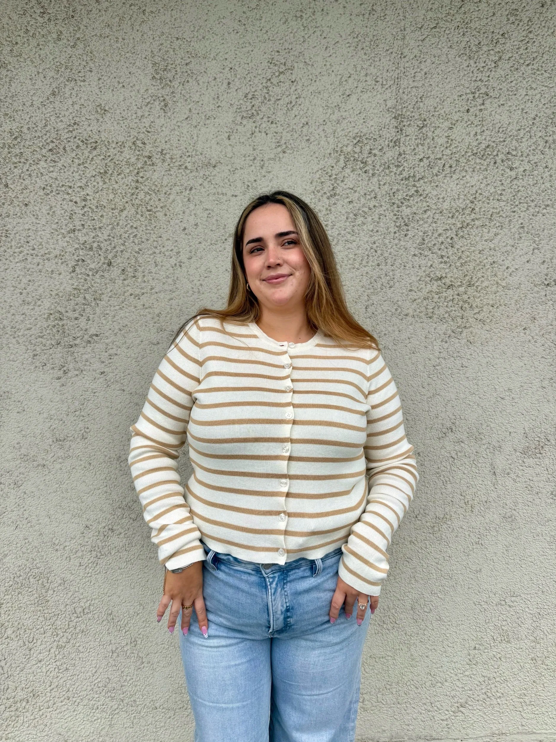 A dark taupe soft to touch long sleeve, a quick layering piece making it a staple.